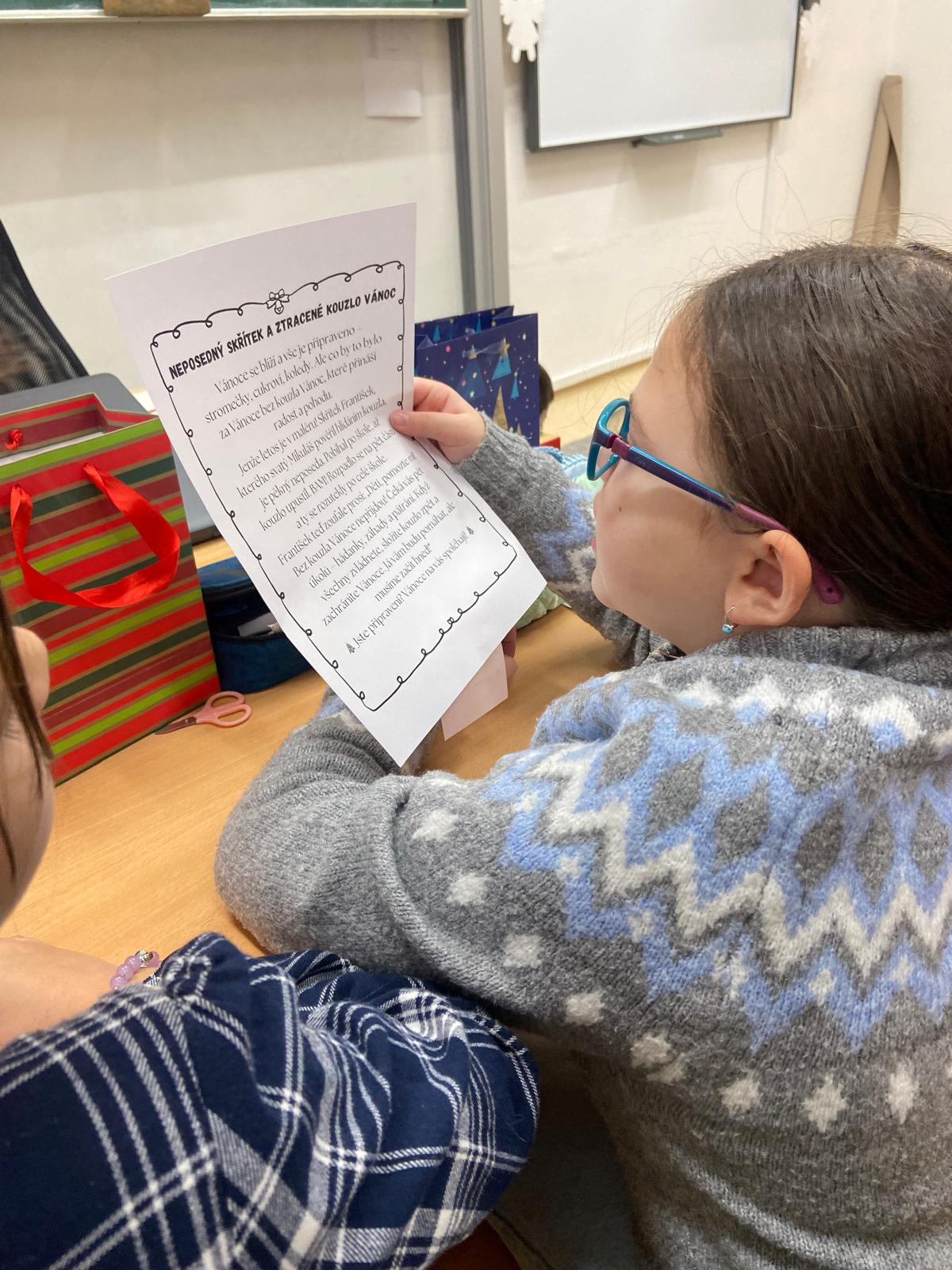 15.12. 2025 jsme jeli na výlet do Ostravy.18.12. 2025 jsme hledali ztracené kouzlo Vánoc (vánoční učení, únikovka).19.12. 2025 jsme si rozbalovali dárečky, poté jsme šli do krmelce.