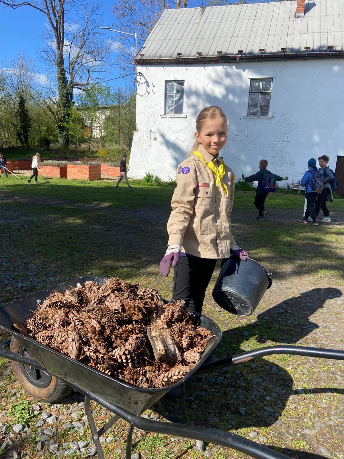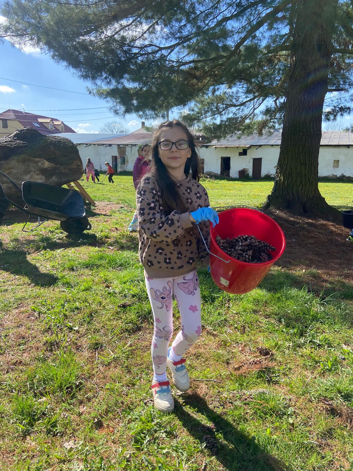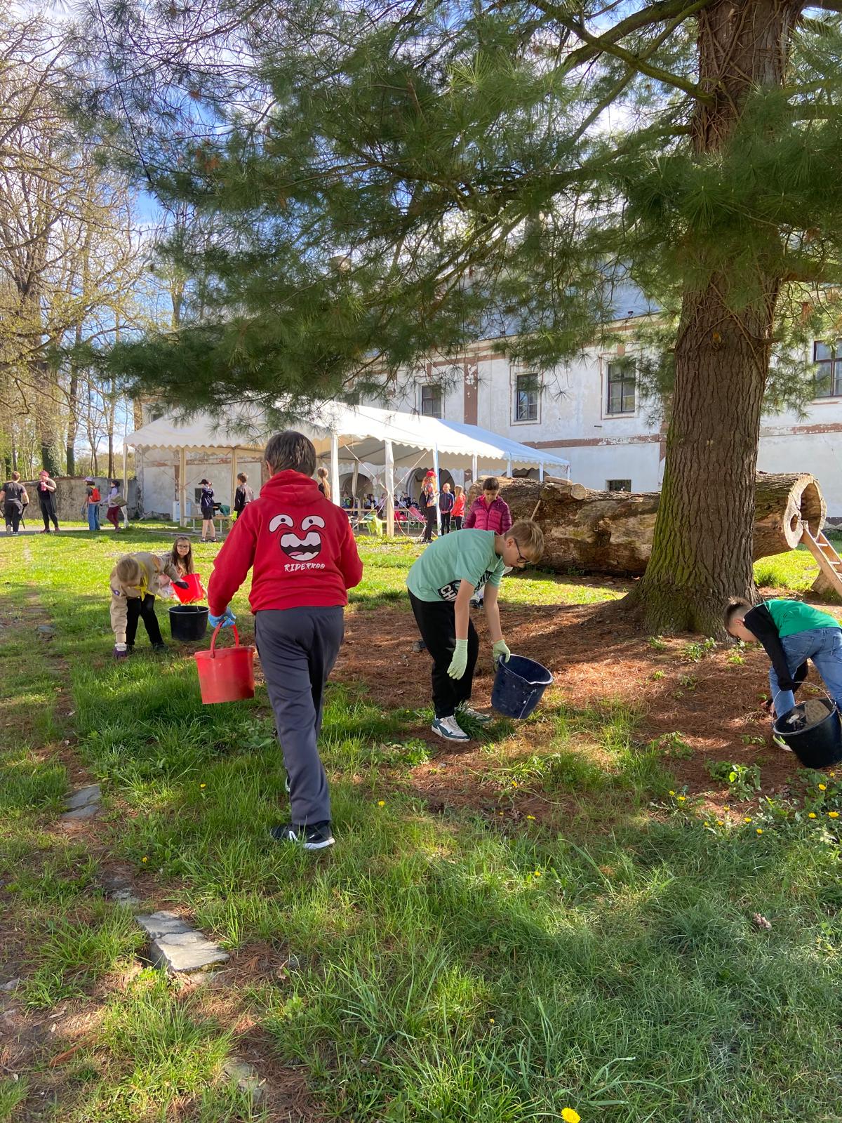 V pátek 24.4. jsme s dětmi oslavili Den Země na zámku. Společně jsme uklízeli okolí, hrabali trávu i jehličí a sbírali šišky. Děti se s chutí zapojily a pomohly udělat okolí zámku zase o něco hezčí.